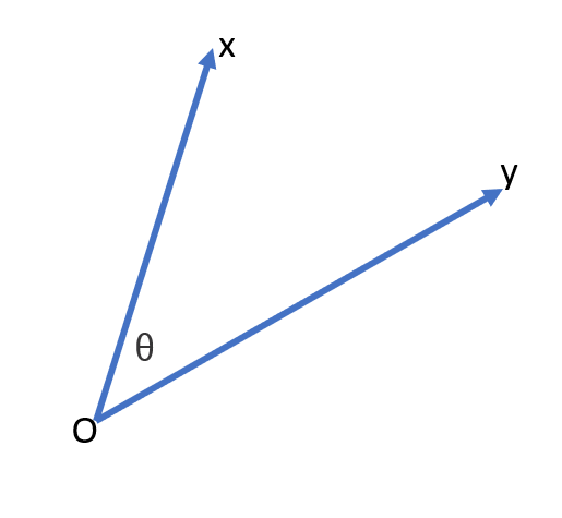สมมติว่าเรามีเวคเตอร์ \(x\) และ \(y\) ใด ๆ โดยให้ \(\theta\) เป็นมุมระหว่างเวคเตอร์ทั้งสอง จงคำนวณ